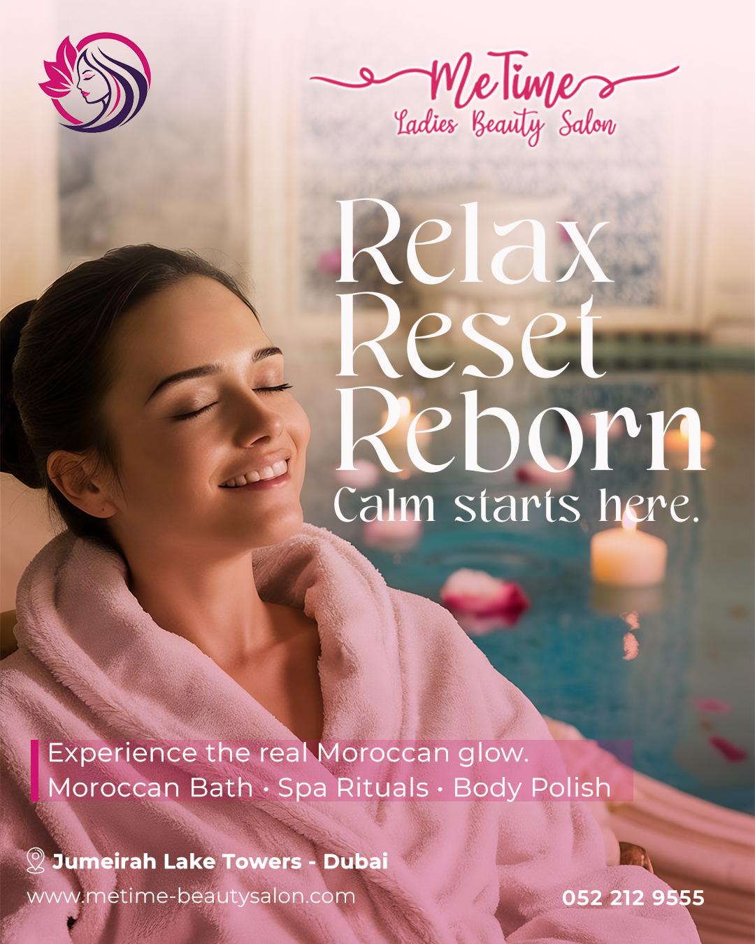 MeTime is more than just a beauty salon in Dubai; its a luxurious escape where elegance and excellence meet. Located conveniently for those searching for a ladies salon near me or a beauty parlour salon, MeTime is dedicated to enhancing every womans natural beauty with artistry and care. Whether you are looking for a ladies beauty parlour near me or a refined beauty salon in JLT, our team of expert stylists and therapists offers an unmatched experience. From glowing facials to nourishing hair treatments, we transform every visit into a rejuvenating journey. As one of the best beauty salons in Dubai, we focus on boosting your self-confidence and helping you embrace your unique allure. At MeTime, beauty is an experience, crafted to perfection.